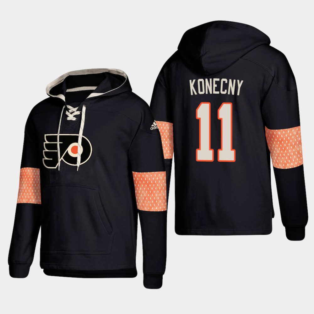 Gorgeous Philadelphia Flyers #11 Travis Konecny Black adidas Lace Up Pullover Hoodie to show your team spirit