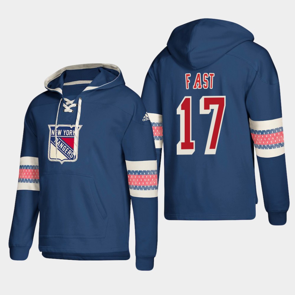 Exceptional New York Rangers #17 Jesper Fast Blue adidas Lace Up Pullover Hoodie