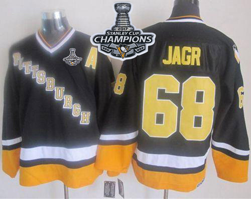 Impressive Penguins #68 Jaromir Jagr Black/Yellow CCM Throwback 2017 Stanley Cup Finals Champions Stitched NHL Jersey for ultimate sports enthusiasts