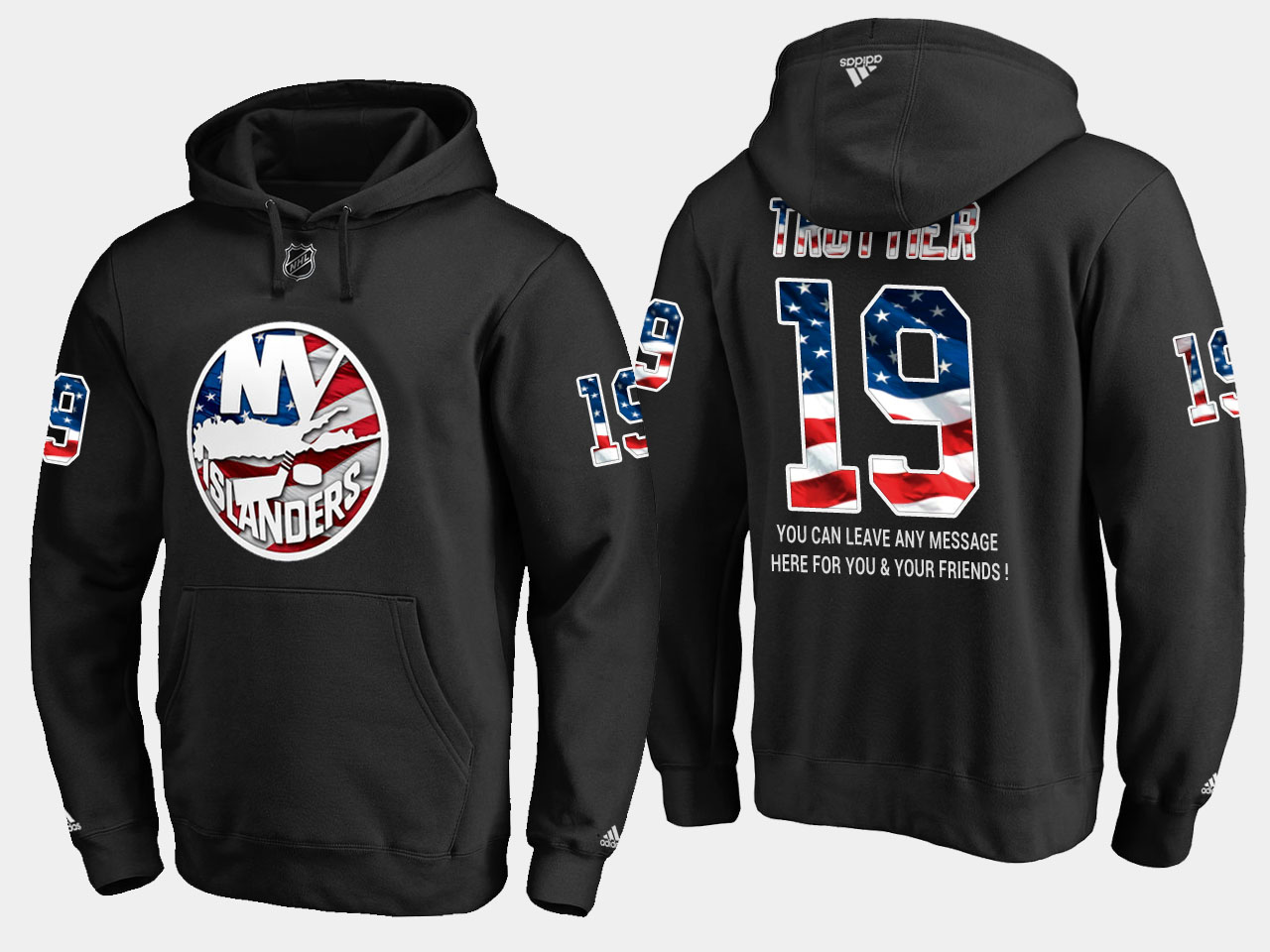 Sleek Islanders #19 Bryan Trottier NHL Banner Wave Usa Flag Black Hoodie to show your team spirit