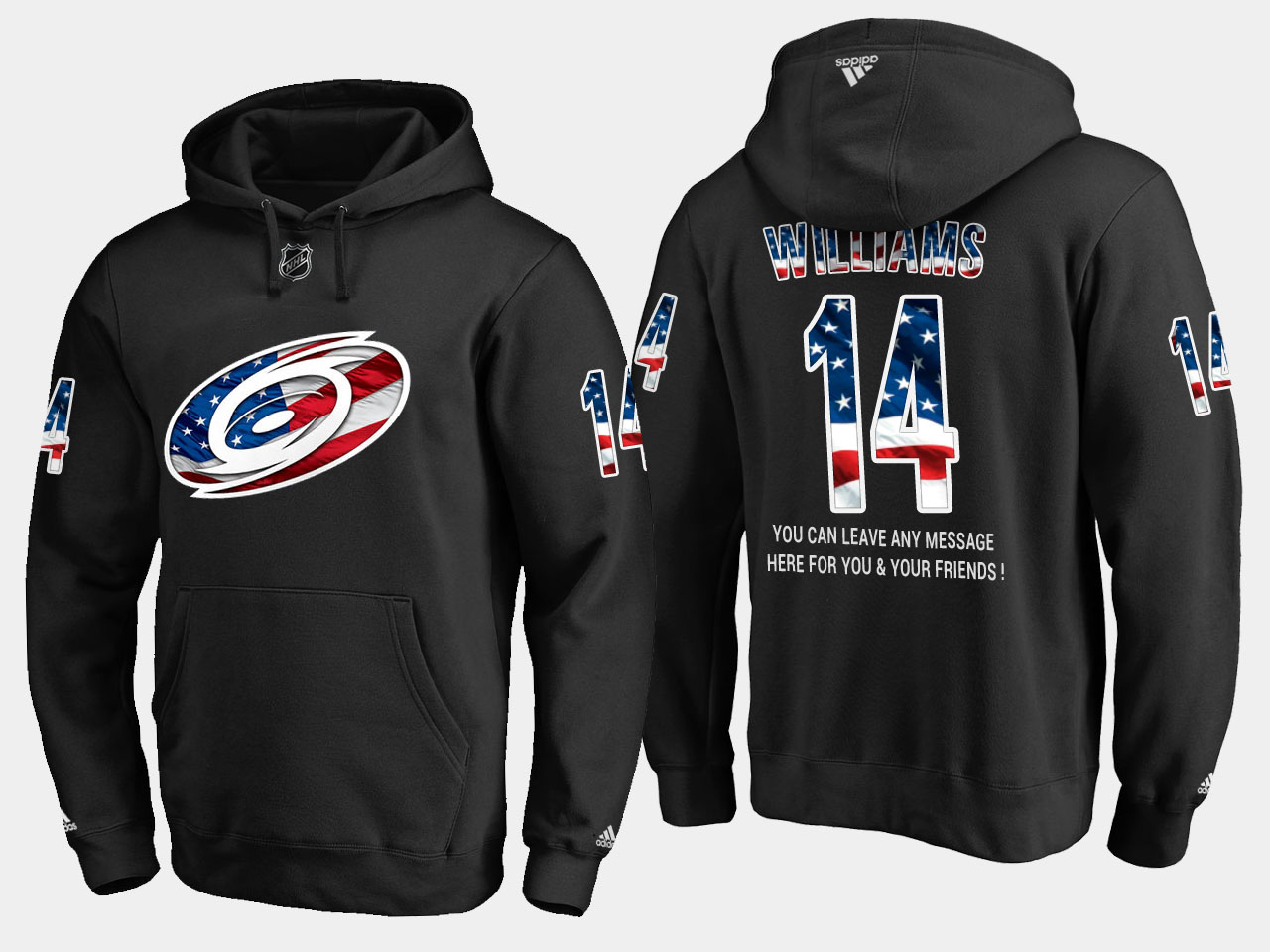 Sleek Hurricanes #14 Justin Williams NHL Banner Wave Usa Flag Black Hoodie for die – hard hockey fans