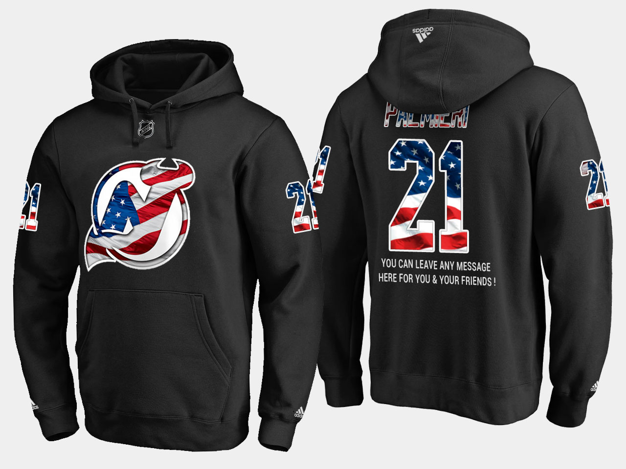 Impressive Devils #21 Kyle Palmieri NHL Banner Wave Usa Flag Black Hoodie to complete your fan gear collection