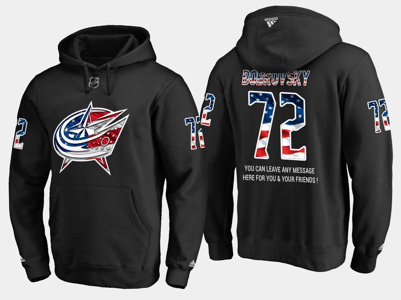Amazing Blue Jackets #72 Sergei Bobrovs NHL Banner Wave Usa Flag Black Hoodie for ultimate sports enthusiasts